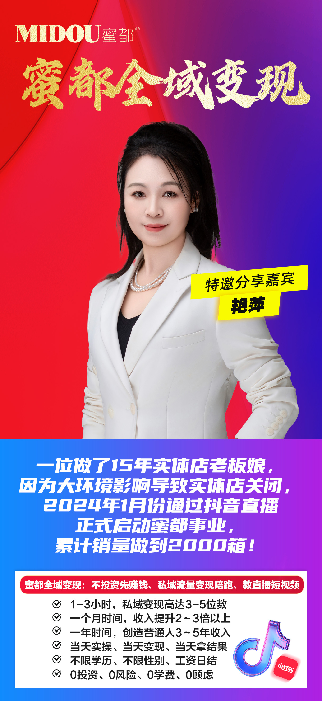 蜜都晨会250922-艳萍-一位做了15年实体店老板娘,因为大环境影响导致实体店关闭,2024年1月份通过抖音直播正式启动蜜都事业,累计销量做到2000箱